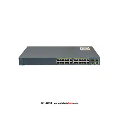 سوئیچ شبکه سیسکو یک سوئیچ شبکه مدیریتی می باشد که می توانید تنظیمات دستگاه را مدیریت کنید و این کار باعث عملکرد بهتر شبکه شما می شود. این سوئیچ به 24 پورت شبکه اترنت مجهز شده است که پورت های آن از قابلیت پی او ای بهره می برد. همچنین برای انتقال دیتاها با سرعت بالاتر می توانید از دو پورت فیبرنوری این دستگاه استفاده کنید که از کانکتور mini-GBIC بهره می برد و شما می توانید با توجه به نیاز خود ماژول مورد نظر خود را بر روی دستگاه نصب کنید. در بدنه جلویی دستگاه چندین چراغ های کوچک ال ای دی تعبیه شده است که می تواند نشانگر وضعیت های System, RPS, Stack link status, link duplex, PoE, and link speed باشد. این محصول قابلیت پشتیبانی از 1024 شبکه مجازی VLANs با حداکثر آیدی 4096 را نیز دارد.